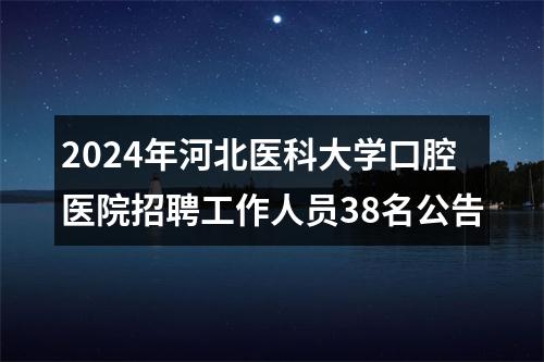 为满足医院发展需要,根据《河北省事业单位公开招聘工作人员暂行办法》,结合2024年招聘工作人员计划和岗位需求情况,河北医科大学口腔医院2024年拟面向社会招聘工作人员38名。现将有关事项公告如下: