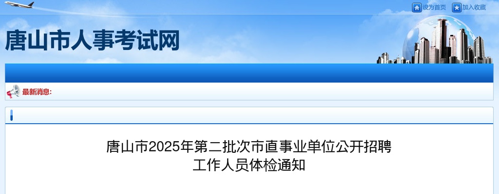 原标题:唐山市2025年第二批次市直事业单位公开招聘 工作人员体检通知
