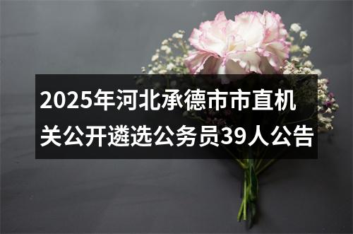 根据《中华人民共和国公务员法》《公务员公开遴选办法》和《河北省公务员公开遴选实施办法》等有关规定,现将2025年度承德市市直机关公开遴选公务员工作有关事项公告如下: